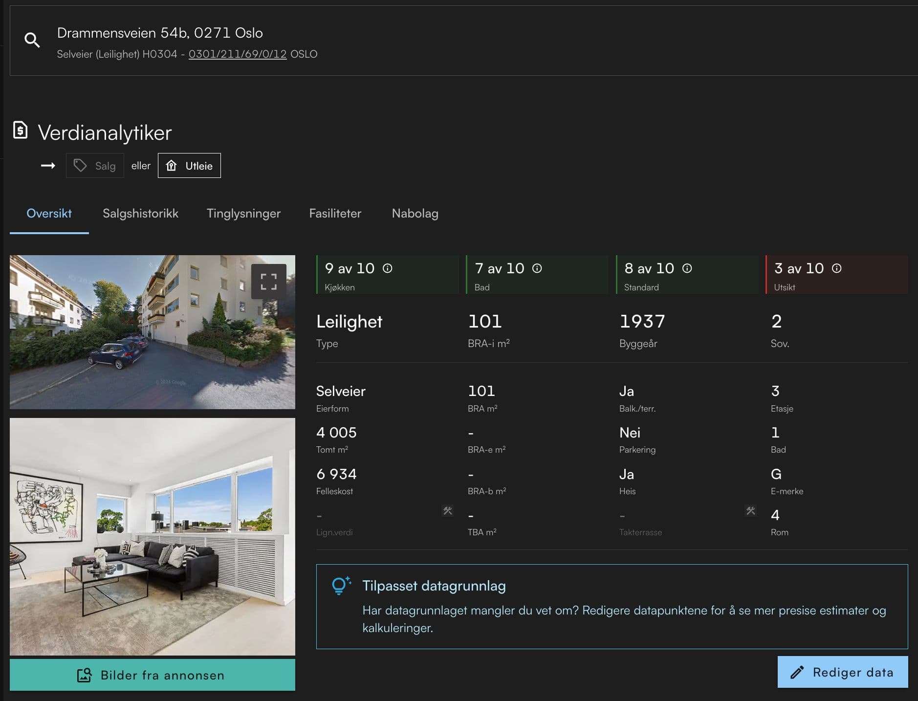 Boligens standard, spesielt på kjøkken og bad, spiller en avgjørende rolle i verdifastsettelsen. Med Solgt.no’s unike teknologi for å beregne standarden på disse rommene, får du en presis verdiberegning. Vår plattform gir deg også muligheten til å justere standardvurderinger og se hvordan dette påvirker verdien, samt tilgang til omfattende lister med sammenlignbare boligsalg.